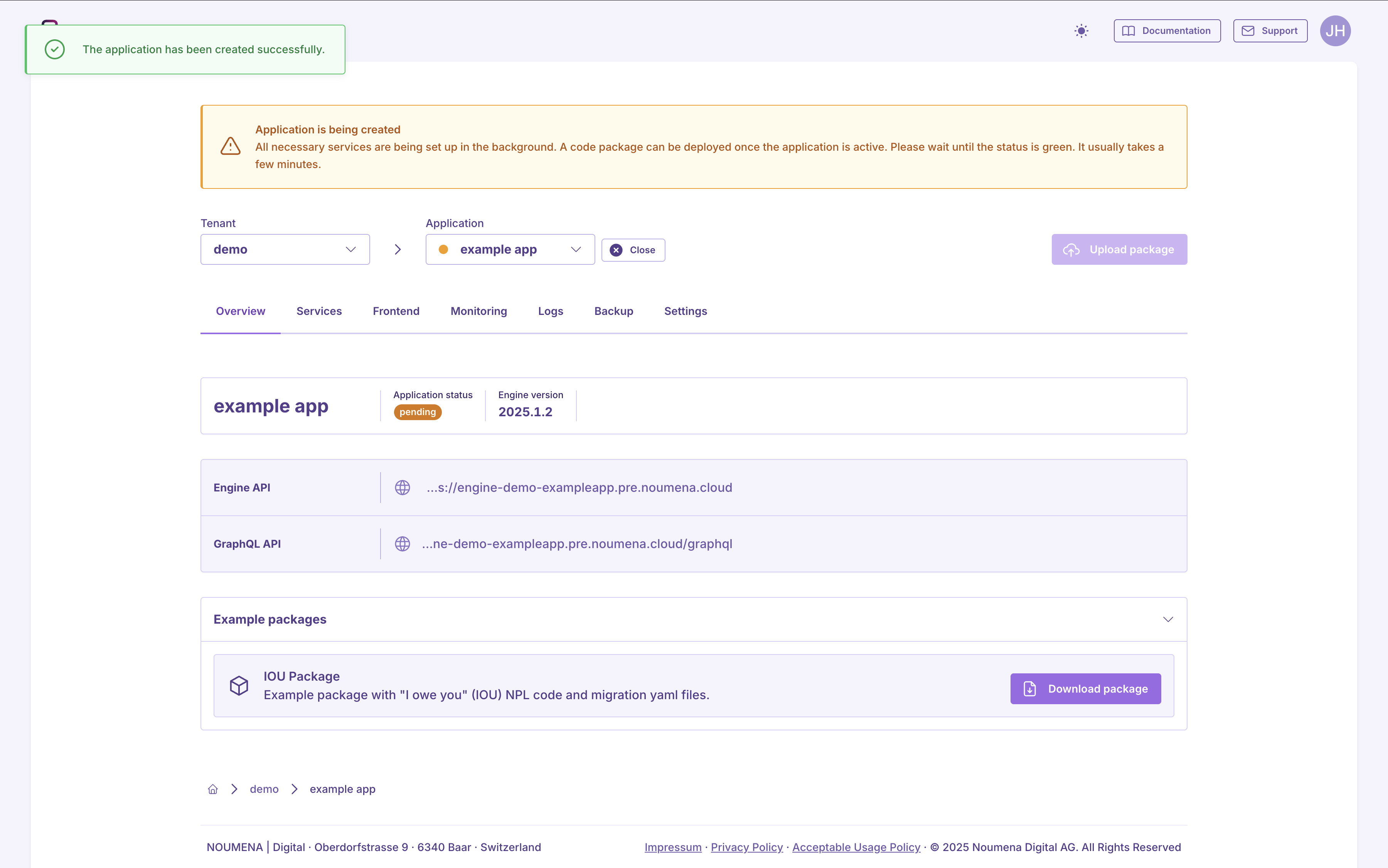 This process usually takes 3-4 minutes as the platform provisions your application environment, database, and identity services.