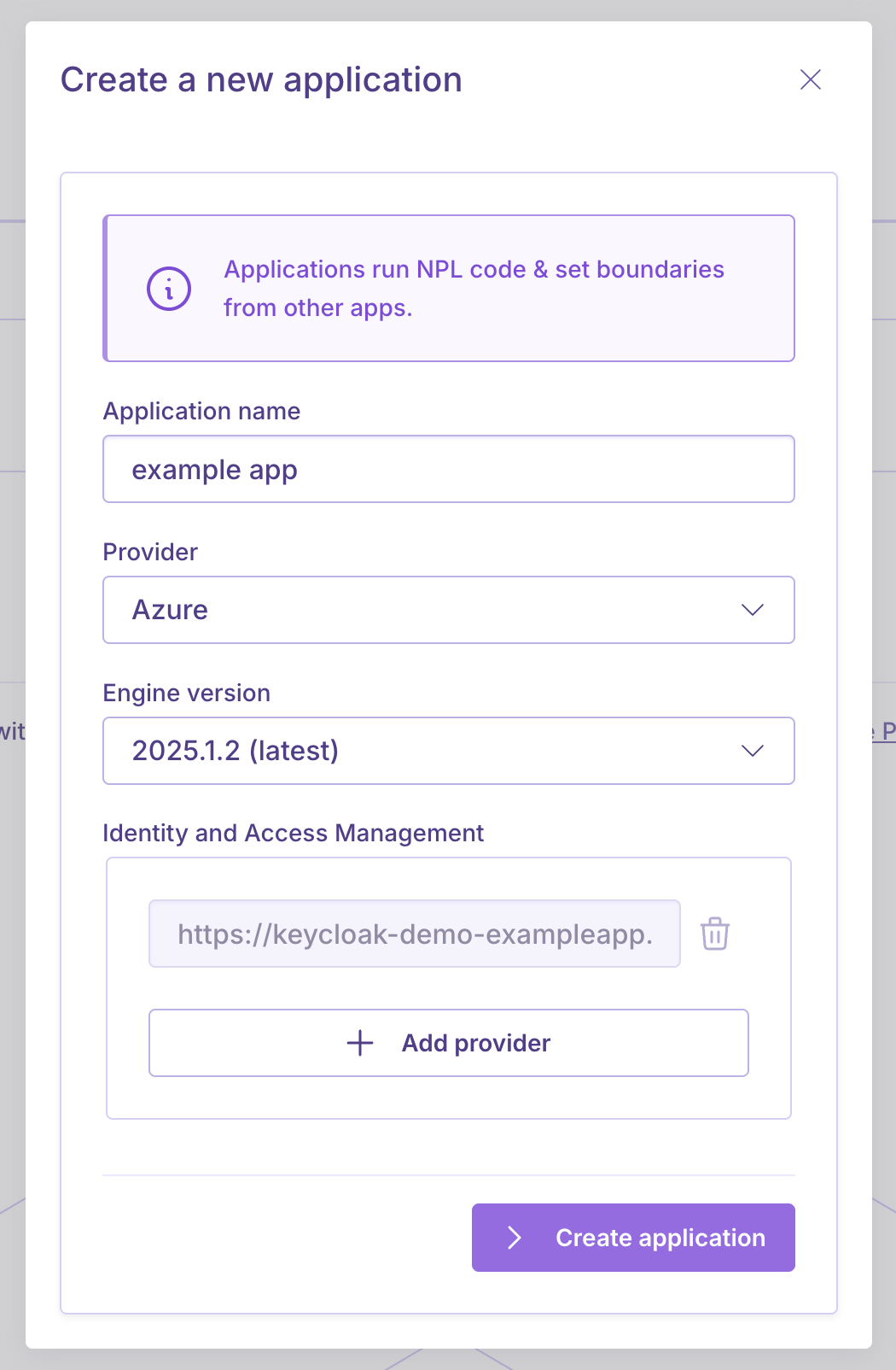 This section guides you through creating a new application in the NOUMENA Cloud portal.