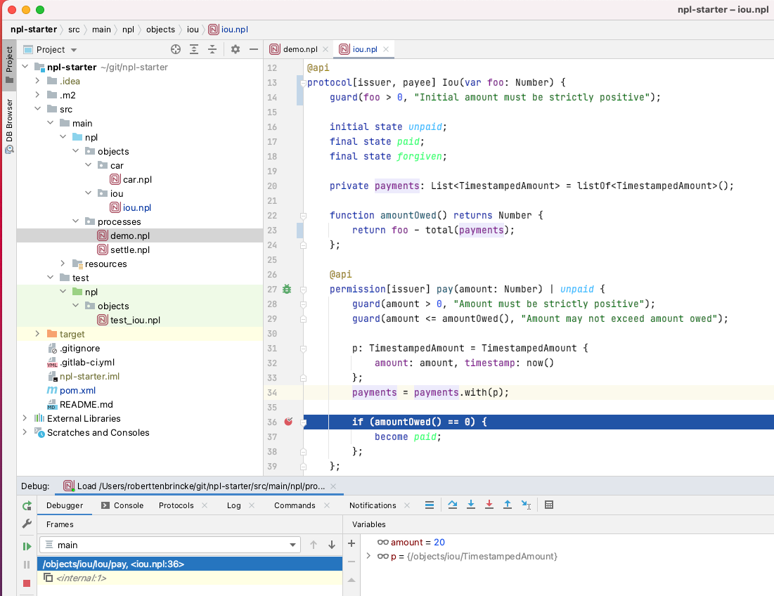 The plugin comes with a debugger that can prove extremely useful when debugging protocol logic, or to simply learn about how code is executed.