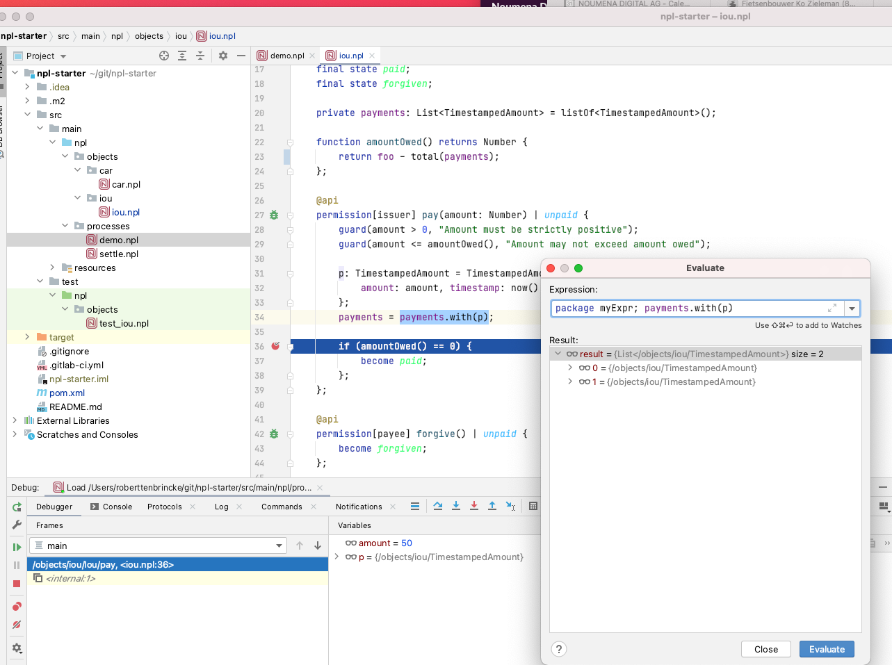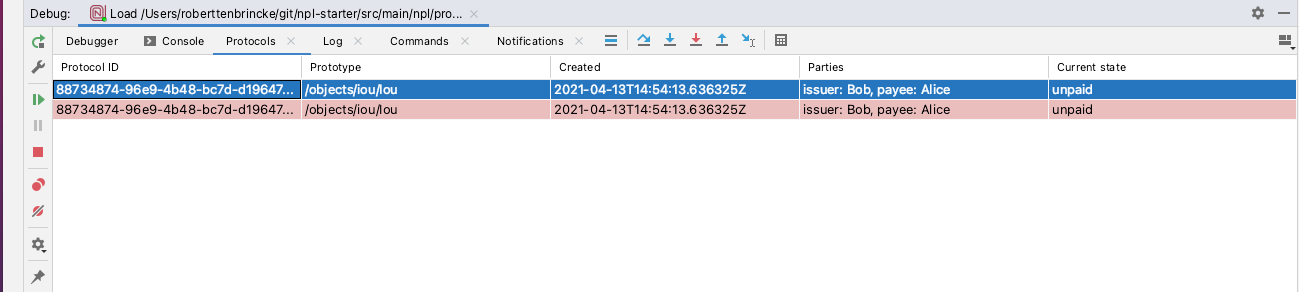 While debugging, protocol states are highlighted with a contrasting colour. These are dirty (intermediate) states that represent states that have not yet been committed - they are the result of the transaction that is in progress and allow you to inspect protocol instances.