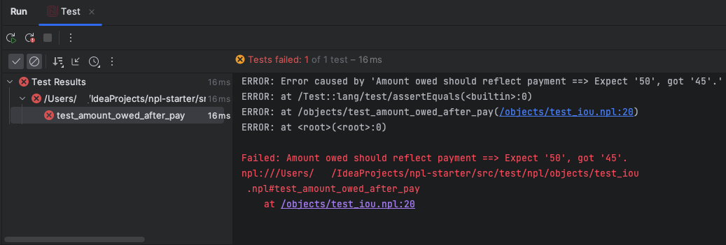 The plugin supports the NPL test suite. To make a test, create a new file, preferably in a "Test sources root" directory. A test is a function that satisfies the following criteria: