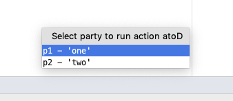If the action can be performed by multiple parties, a window appears prompting for the actual party to execute this